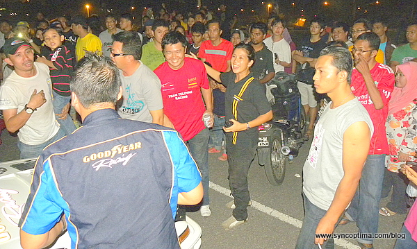 Jane had to go against Faizal ( I think ) in his Bluebird. I played mind games with him by jokingly saying to him that I would be extremely embarrassed if I was beaten by a girl .hahahha. Anyways the first round was a close fight with Jane and him winning one round each. However during the one more time, Jane fumbled and had straighten on both runs. She was then relegated to spotting duties ,taking over Kevin Boey ,soon after .